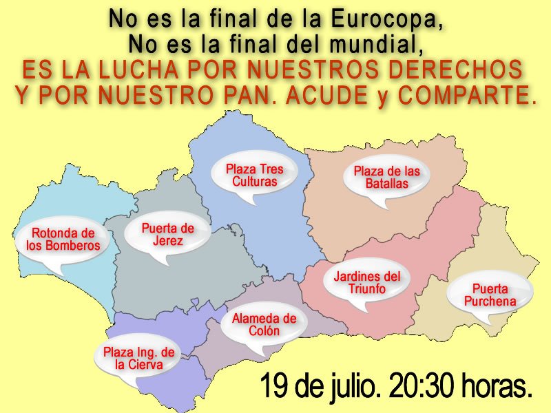 "ESTADO DEL MALESTAR". No sé si lo habréis visto, porque evidentemente en la tele no se le está dando ningún espacio, pero desde hace un par de semanas, ha surgido en todas las capitales de España un movimiento absolutamente espontáneo y pacífico de reunión (no manifestación, ni nada por el estilo) de personas que están hasta los h.. de la situación actual a todos los niveles. El objetivo de estas reuniones es hacerse oír (repito, de una manera pacífica) e intercambiar puntos de vista, de informar a todo aquel que se acerque de las cosas y procederes de la sociedad con las que está en desacuerdo. La metodología es sencilla. Muchos llevan una cartulina con una frase que resume su preocupación o la solución que piensan que tiene determinado problema. Otros, más poéticos, aportan unas velas y unas flores por la muerte de la juventud y de una generación (cada vez más amplia) de ciudadanos desengañados. Son personas de a pié, sin filiación política (estaría bueno), que simplemente no aguantan más, y quieren buscar soluciones y ejercer sus derechos como ciudadanos. Esto es un breve resumen, abajo os dejo unos enlaces donde encontraréis más literatura, fotos e incluso algún vídeo. El movimiento en sí se denomina "Estado del Malestar", y se apoya en muchas cosas y personas que ya conocemos (Zeitgeist, Cantoná, David Bravo, Mario Conde...). Se reúnen todos los viernes a las 19 horas en una plaza de la localidad en cuestión (en Sevilla es la Plaza Nueva). Ayer en Sevilla solo había 22 personas, pero ya eran diez más que el viernes anterior. Creemos que es una ocasión de oro para empezar a actuar por nuestra cuenta, dejando de esperar a que Papá Estado y Mamá la Banca nos solucionen la papeleta mientras los ponemos verdes desde la barra de un bar o el sofá de casa. Que se sume quien quiera. Si somos pocos al principio, ya seremos más, porque el malestar lo sienten millones de personas. http://malestar.org/ http://www.facebook.com/home.php?sk=group_193384717347579&ap=1 (Nacional) http://www.facebook.com/home.php?sk=group_201459896533323 (Internacional) Mucho ojo y estad alerta, que estamos en precampaña electoral y se puede arrimar mucho interesado... Un abrazo. Enviiado por Antonio N. |